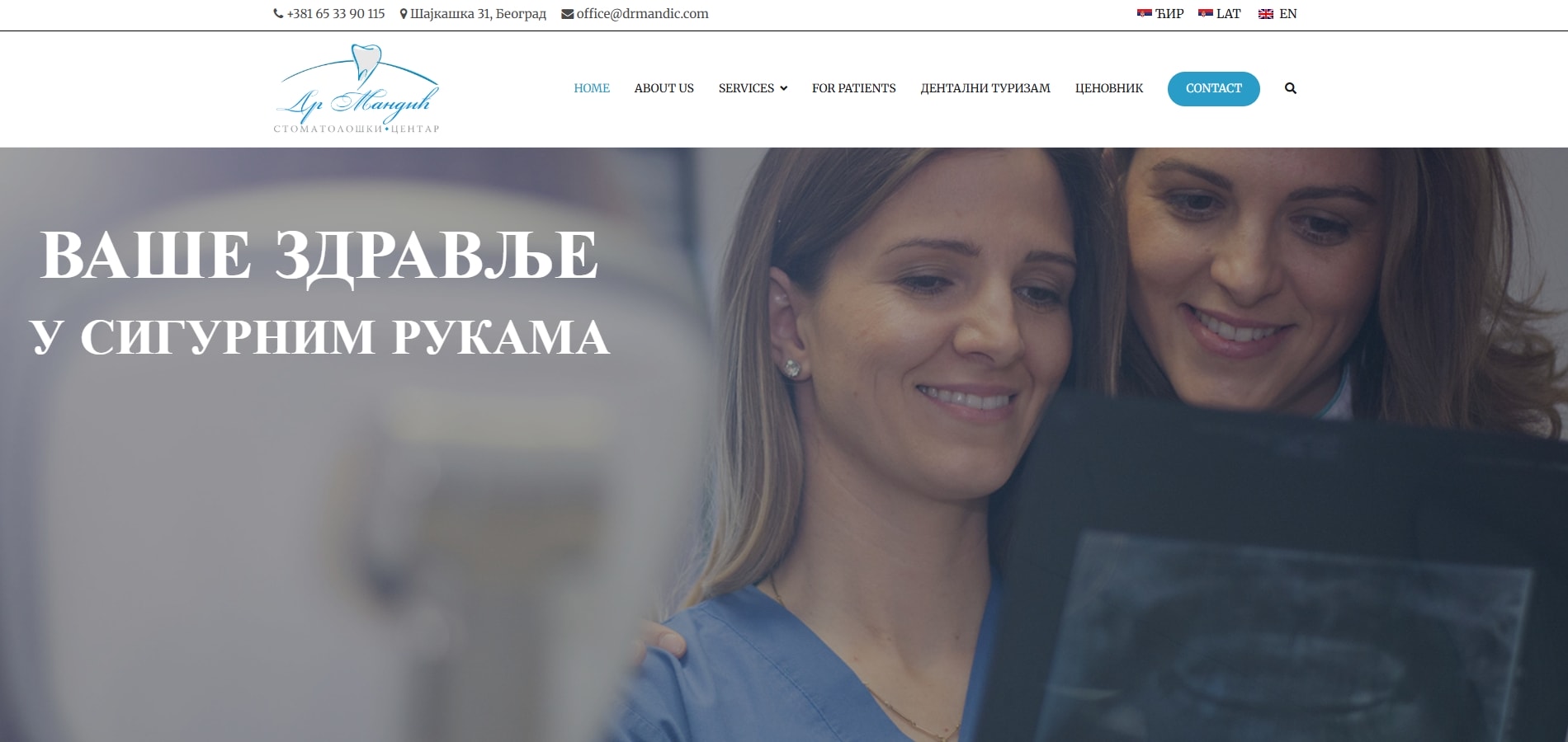 Portfolio HomePortfolioDr Mandić Stomatološka ordinacija Dr Mandić Izrada web sajta KLIJENT Dr Mandić WEBSITE drmandic.com Newer John’s Wood Back to list Older BoljaŠolja Ostali projekti View Large SEO Web dizajn John’s Wood View Large Web dizajn Knjigovodstvena Agencija Biševac View Large AI SEO CRO Digitalni marketing Internet prodavnice SEO Web dizajn Bazzinga Shop View Large CRO Internet prodavnice SEO Web dizajn Data Status